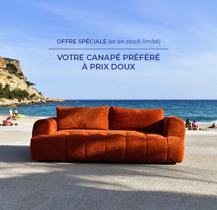 Canapé droit fixe 2 places MELISSE tissu texturé avec pouf