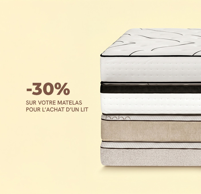 Ensemble avec Lit MALON + matelas AMALIA + 2 chevets tissu texturé